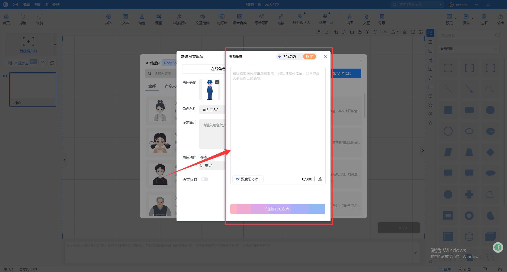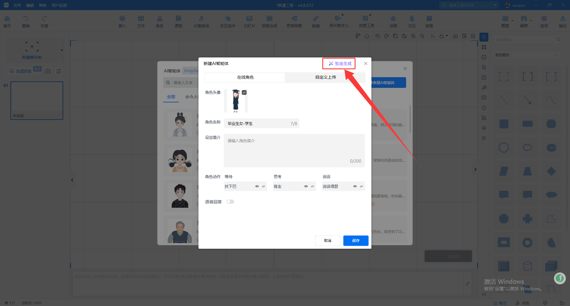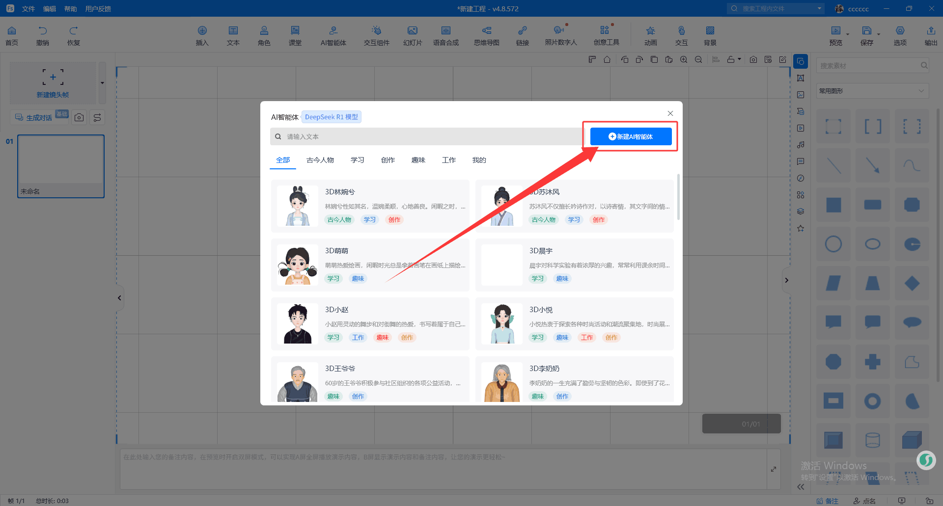 3、AI智能体:“可交互角色”正式升级为“AI智能体”,现支持输入主题或要求,一键生成智能体角色