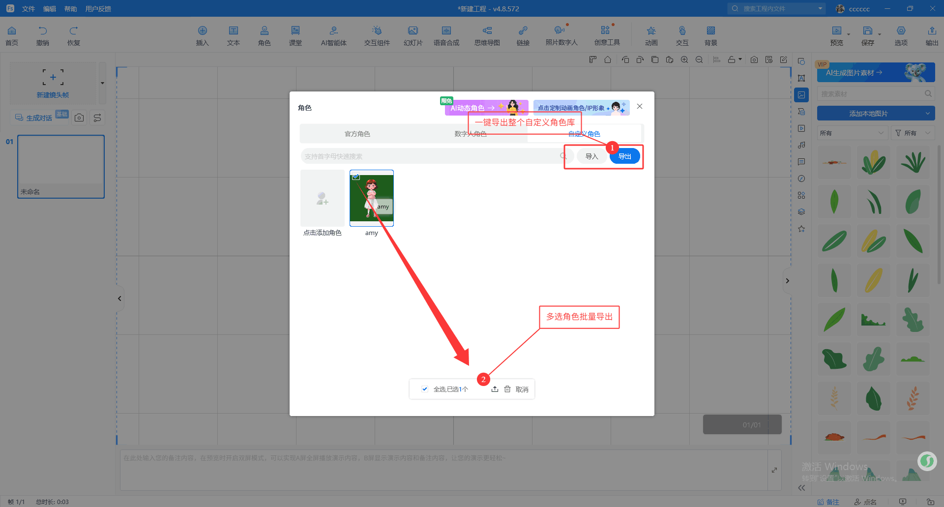 8、自定义角色:支持一键导入/导出自定义角色,便于素材迁移、分享或管理